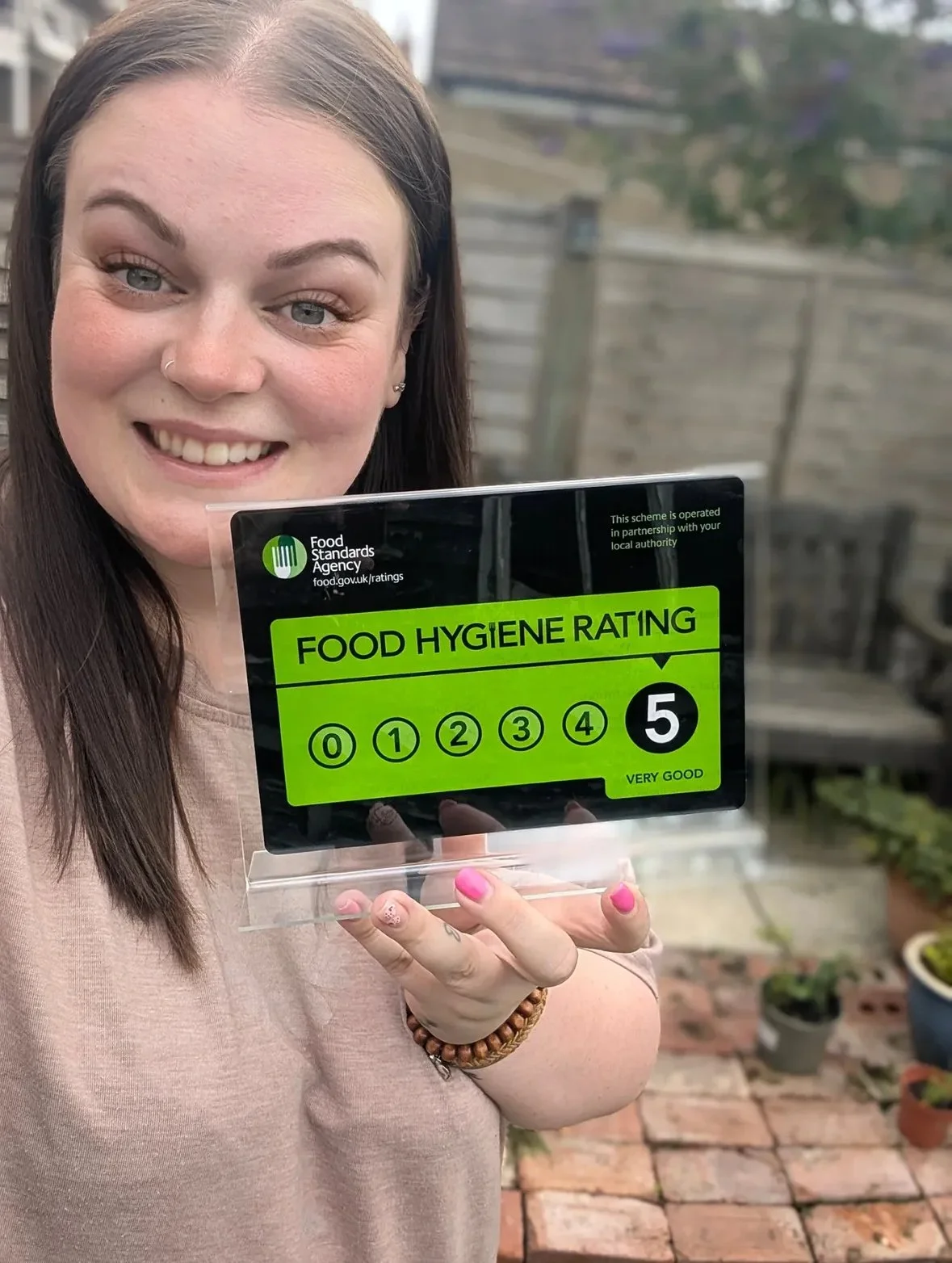 I’m proud that my kitchen has a 5 star hygiene rating, showing my commitment to keeping everything spotless and safe.